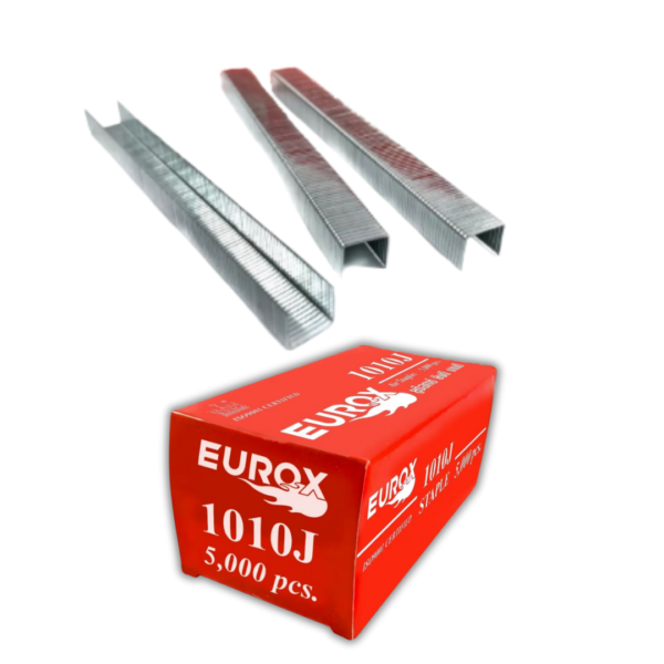 ตะปูลูกแม็ก EUROX รุ่น 1010J เป็นตะปูขาคู่ที่ผลิตจากเหล็กคุณภาพมาตรฐาน มีความแข็งแรงทนทาน เหมาะสำหรับงานไม้ งานเฟอร์นิเจอร์ และงานเบาะโดยเฉพาะ