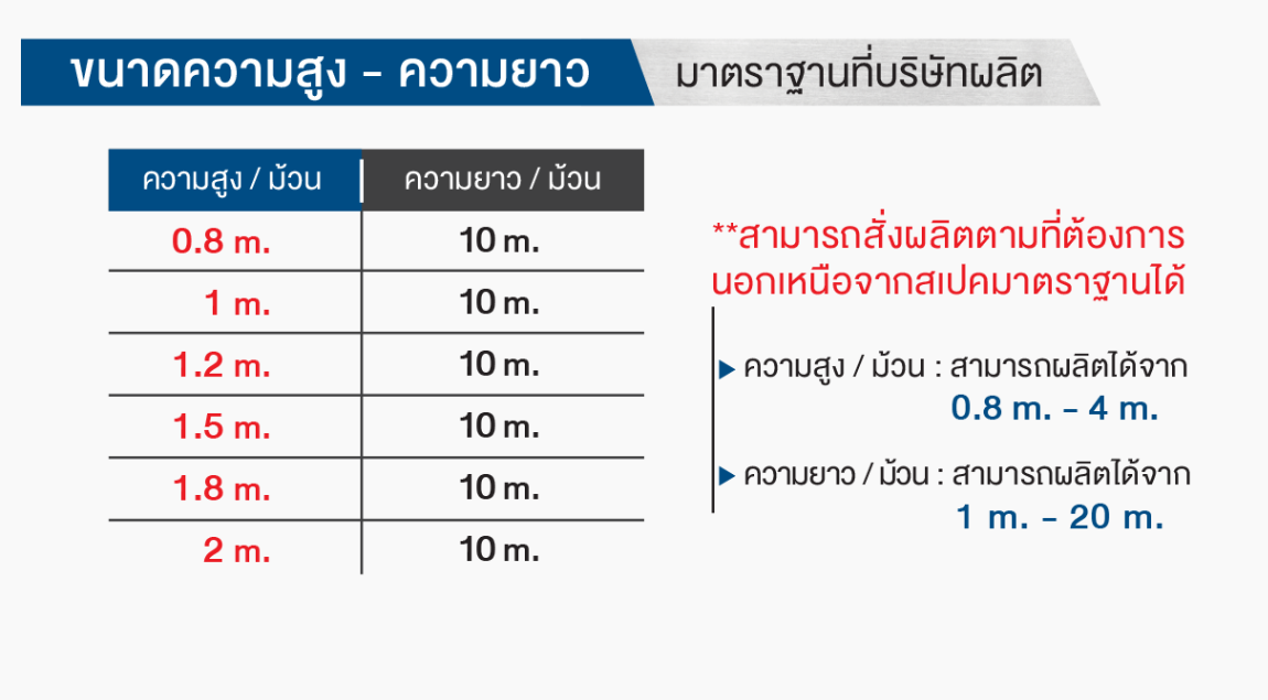 - รั้วตาข่ายถัก (Chainlink Fencing Mesh) ผลิตจากลวดเหล็กชุบซิงค์ (Hotdip Galvanized ) และลวดสแตนเลส นำมาถักเป็นตาข่ายร้อยเกลียวกัน มีลักษณะเป็นลวดเหล็กเส้นเล็กๆ มาสานต่อกันเป็นตาข่าย หรือตะแกรง สามารถม้วนได้
