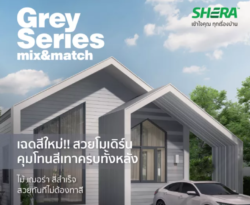 ไม้ระแนงเฌอร่า ขอบวี ลายเสี้ยน สีเทาโมเดิร์น 0.8×7.5×300ซม.